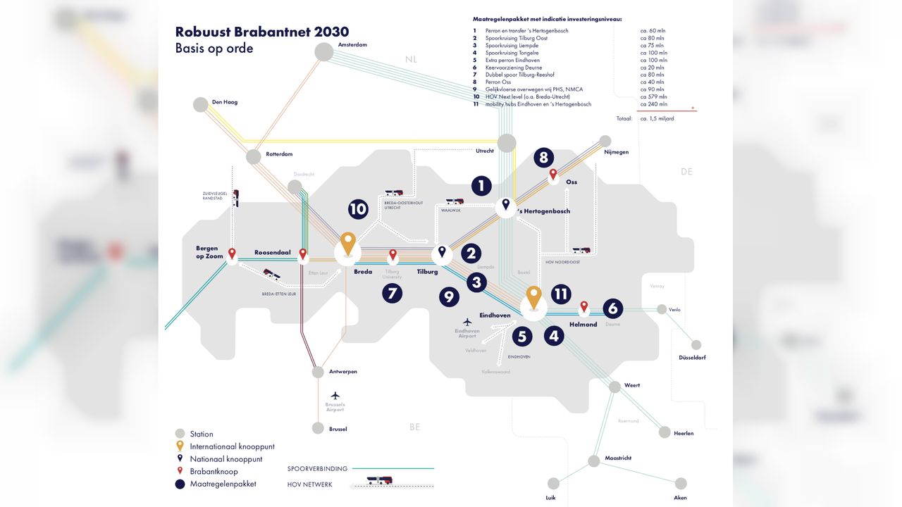 Er moeten daarnaast meer treinen kunnen worden ingezet waar meer mensen in kunnen. Om dit te kunnen realiseren, moeten er voor 2030 in Brabant al een paar knelpunten worden opgelost. Volgens de provincie is er namelijk geen tijd te verliezen, omdat sommige treinen in Brabant nu al vol zitten.