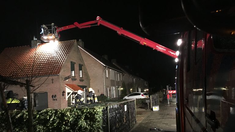Hoogwerker van de brandweer beschadigt twee auto's bij schoorsteenbrand in Schijndel