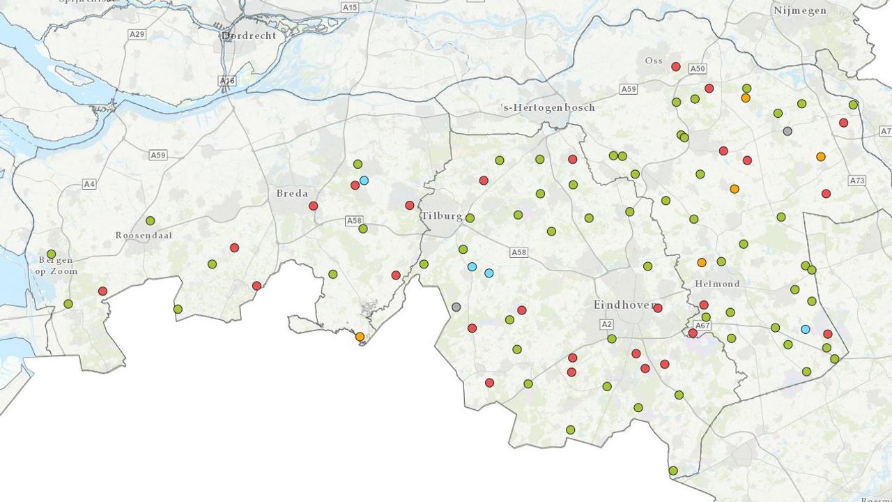 Op de hogere gronden is het sinds de droge zomer nog steeds een ander verhaal. "Je moet dan denken aan gebieden rond Someren, Boekel, Volkel en Sint Anthonis en tussen Breda en Tilburg. Daar is het waterniveau nog steeds rood gekleurd.