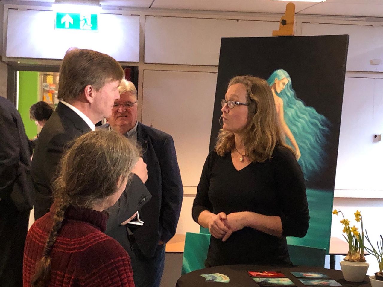 Alleen een paar mensen, betrokken bij de organisatie, wisten dat de koning op bezoek kwam. De rest ging ervan uit dat ze wat over hun onderneming zouden vertellen tegen de burgemeester. En dus was de verrassing groot toen ineens koning Willem-Alexander op de stoep stond. De koning maakte met iedereen een ontspannen praatje.