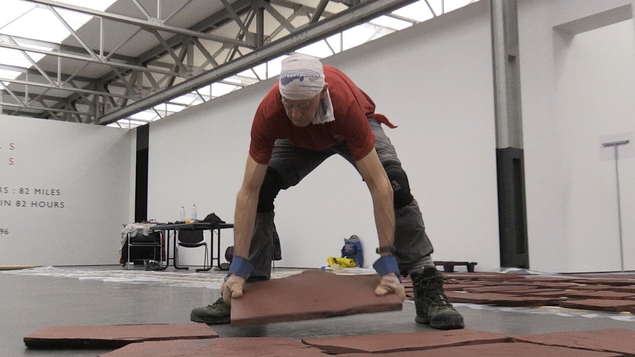"You're missing all the fun", komt Long me waarschuwen als ik een strak kruis van kleine rotsblokken aan het filmen ben. In de aanpalende ruimte is hij bezig om met rode, platte stenen een lange rechthoek te leggen.