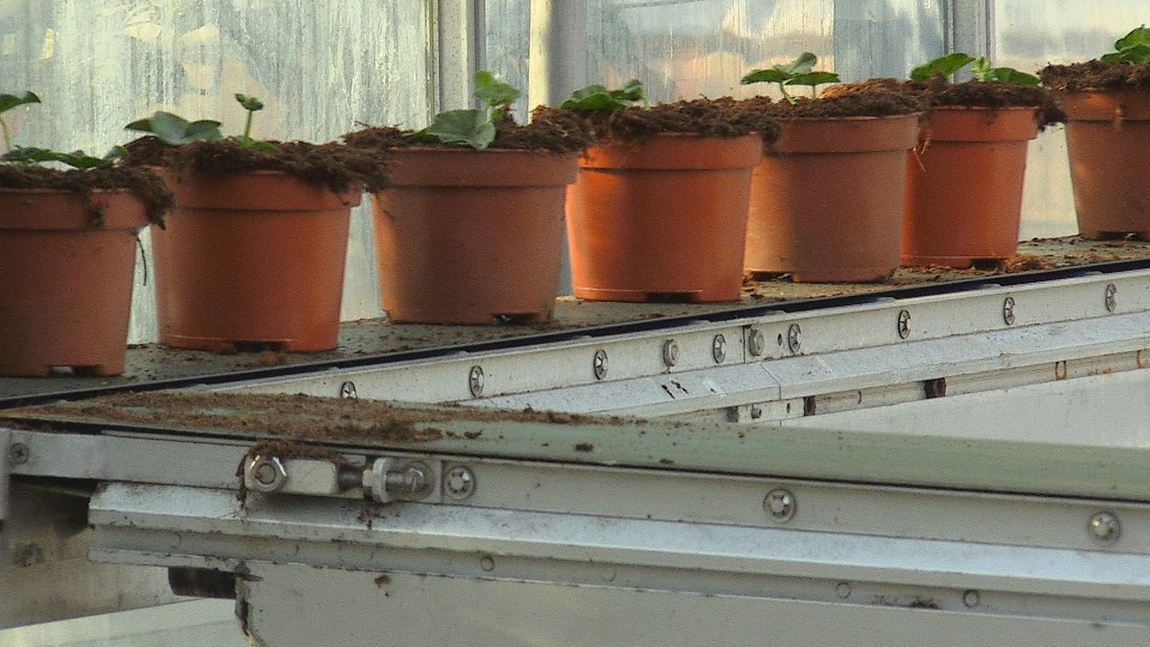“Na de couveuse fase worden ze overgezet in iets grotere bloempotten en gaan naar een andere afdeling. Je zou kunnen zeggen de kleuter afdeling, daar groeien ze verder om als ze groot genoeg zijn opnieuw verpot te worden. In de kas zijn ze donderdag bezig om duizenden opgroeiende geraniums uit Ethiopië voor de derde en laatste keer te verpotten. Als dat is gedaan gaan ze via een lopende band op reis door de kas naar hun definitieve plek. In het filmpje hieronder zie je de geraniums op ‘doorreis’.