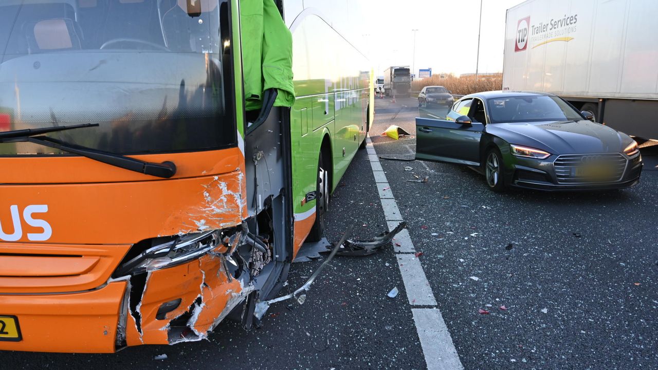 Bus, vrachtwagen en auto betrokken bij ongeluk op A16