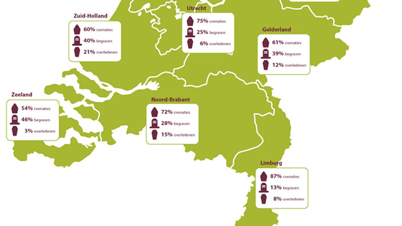 Dat veel mensen in Brabant kiezen voor een crematie is volgens uitvaartorganisatie Monuta opvallend omdat de kosten voor begraven lager zijn dan in de rest van het land. In Limburg worden in verhouding nog meer mensen gecremeerd dan in Brabant, namelijk 87 procent. Ook in Drenthe (79 procent) en Utrecht (75 procent) is het aantal relatief hoog.