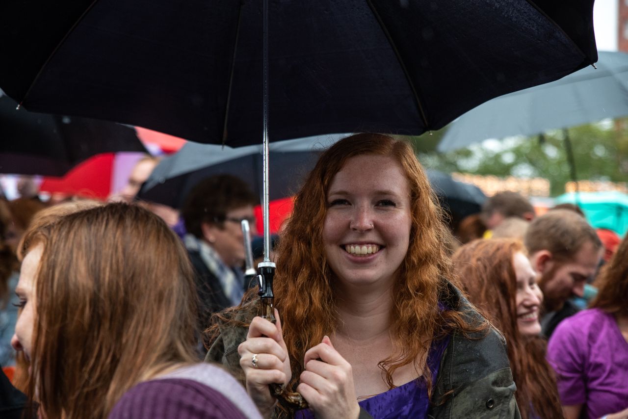 Vorig jaar was een paraplu geen overbodige luxe voor de roodharigen die toen nog naar Breda waren gekomen.