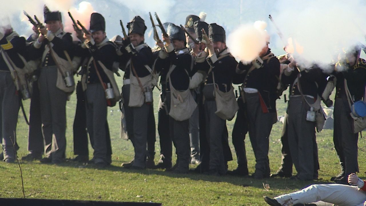Op het slagveld tussen Slot Loevestein en Woudrichem hing zowel zaterdag als zondag een enorme kruitlucht. Deelnemende Franse troepen en Oranjegezinde vechtersbazen beschoten elkaar met kanonnen en geweren. “De kanonnen en geweren worden met echt buskruit geladen om ze af te vuren, met één verschil: er zitten geen kogels in”, vertelt Hans van Osch, die in de moderne tijd beveiligingsexpert is.