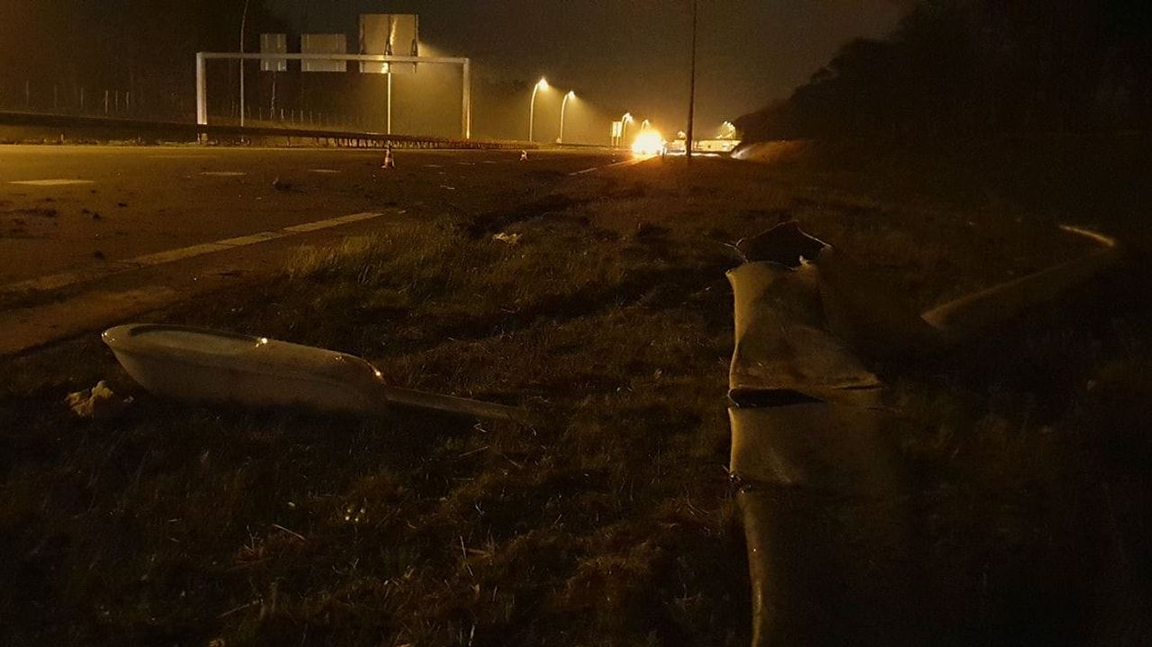 Door de botsing tegen de lantaarnpalen ontstond een ravage op de Midden-Brabantweg, overal lagen brokstukken. Een andere auto die daarop reed, raakte beschadigd.