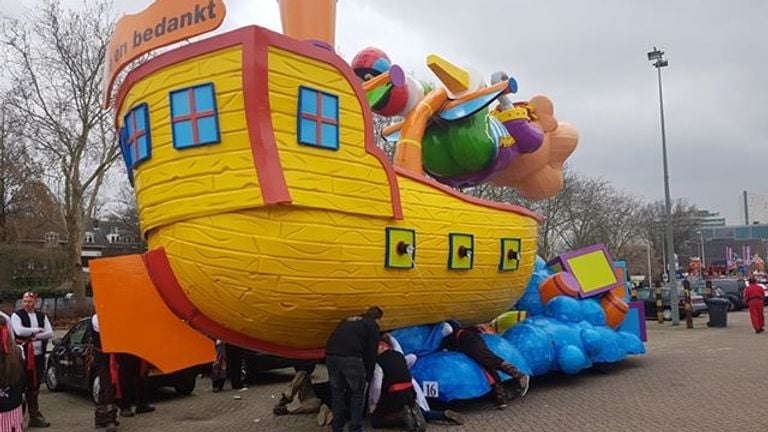 14.47: LEES OOK: Dikke pech voor de Zware Jonens: ‘Carnavalswagen rijdt niet mee want boot dreigde te kapseizen’.