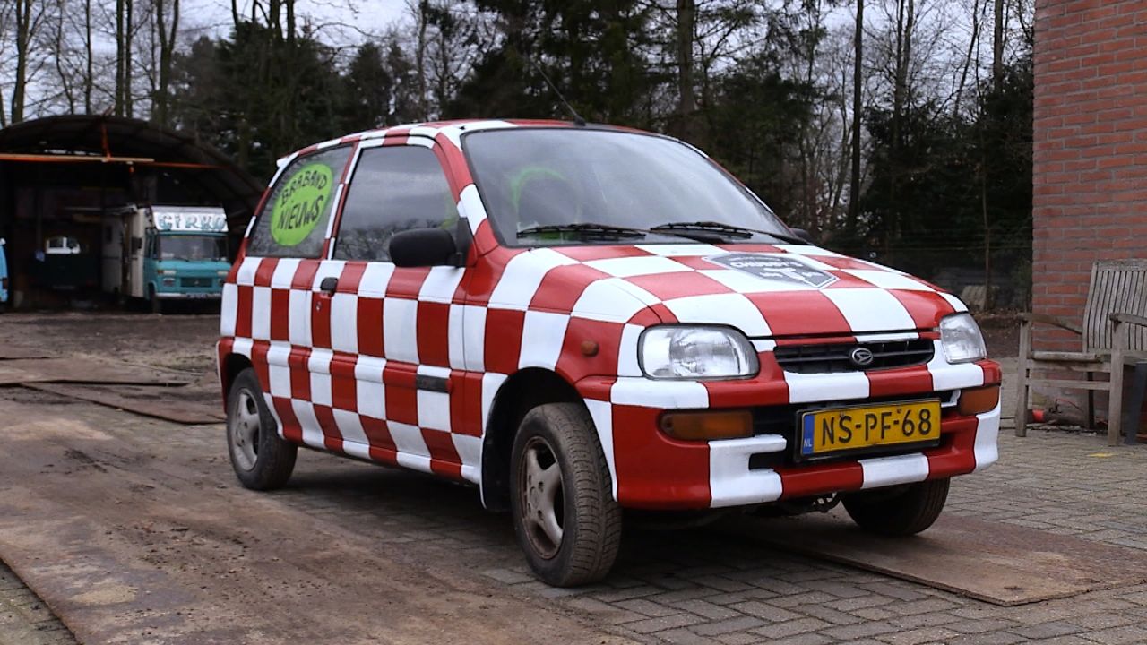 John knutselt regelmatig met oude wagens. Op de sloop krijgt John nog 200 euro voor deze creatie. “Iemand die daarboven biedt, mag hem zo meenemen. Hij is gekeurd en mag de weg op. Alles werkt gewoon.”, weet John. “Misschien is het leuk voor een voetbalclub of een winkel.”