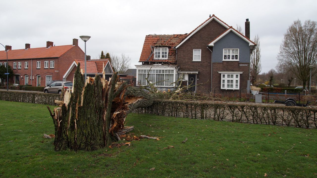 Bomen vielen om op daken en huizen, fietsers waaiden weg en wegen zijn onbegaanbaar. Een stevige storm met windstoten tot 100 kilometer per uur raasde zondagmiddag over Brabant.