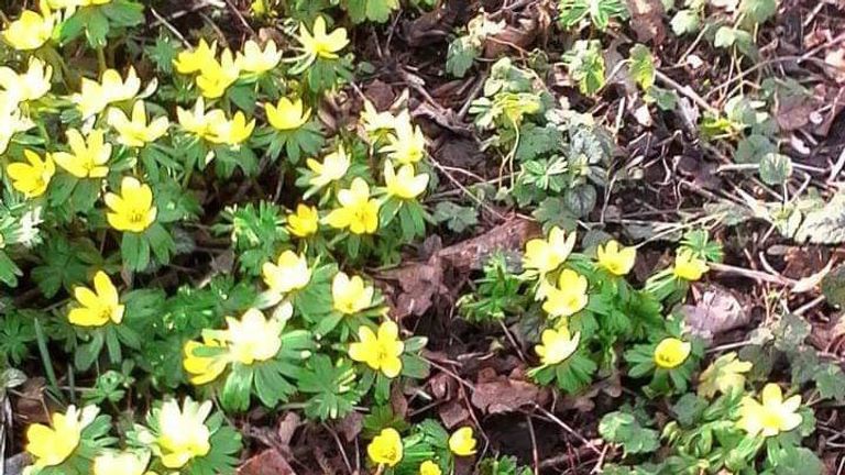 Op de foto die ik kreeg van Rozemarijn van Gerwen zie je mooie groene planten met prachtige felgele bloemen. Dit zijn winterakonieten. Winterakonieten gaan als een van de eerste bloeiende plantensoorten in het begin van de lente bloeien. Soms al tijdens zachte winters. Ze vallen met hun prachtige gele kleur direct op in het bladerloze loofbossen. Voorheen, vanaf de zestiende eeuw, kwamen ze vooral voor op buitenplaatsen. Vandaar dat ze ook onder de stinsenflora vallen. Stins is Fries voor huis van steen. Winterakonieten zijn echte schaduwplanten en waren oorspronkelijk te vinden in het zuid en van Frankrijk, Italië en op de Balkan. De laatste jaren zie je winterakonieten ook steeds meer in onze bossen en wegbermen met een lemige of kleiige ondergrond. Voor de verspreiding van de soort zijn vooral mieren verantwoordelijk. In de vruchten van deze plant zitten veel zaden, die door de regendruppels eruit geslingerd worden. Die zaden worden daarna door mieren naar hun nest meegenomen, want aan de zaden hangen zogenaamde mierenbroodjes. Deze mierenbroodjes bevatten extra voedingsstoffen die mieren graag eten en dus maakt de winterakoniet mooi gebruik van deze mieren als transportmiddel.