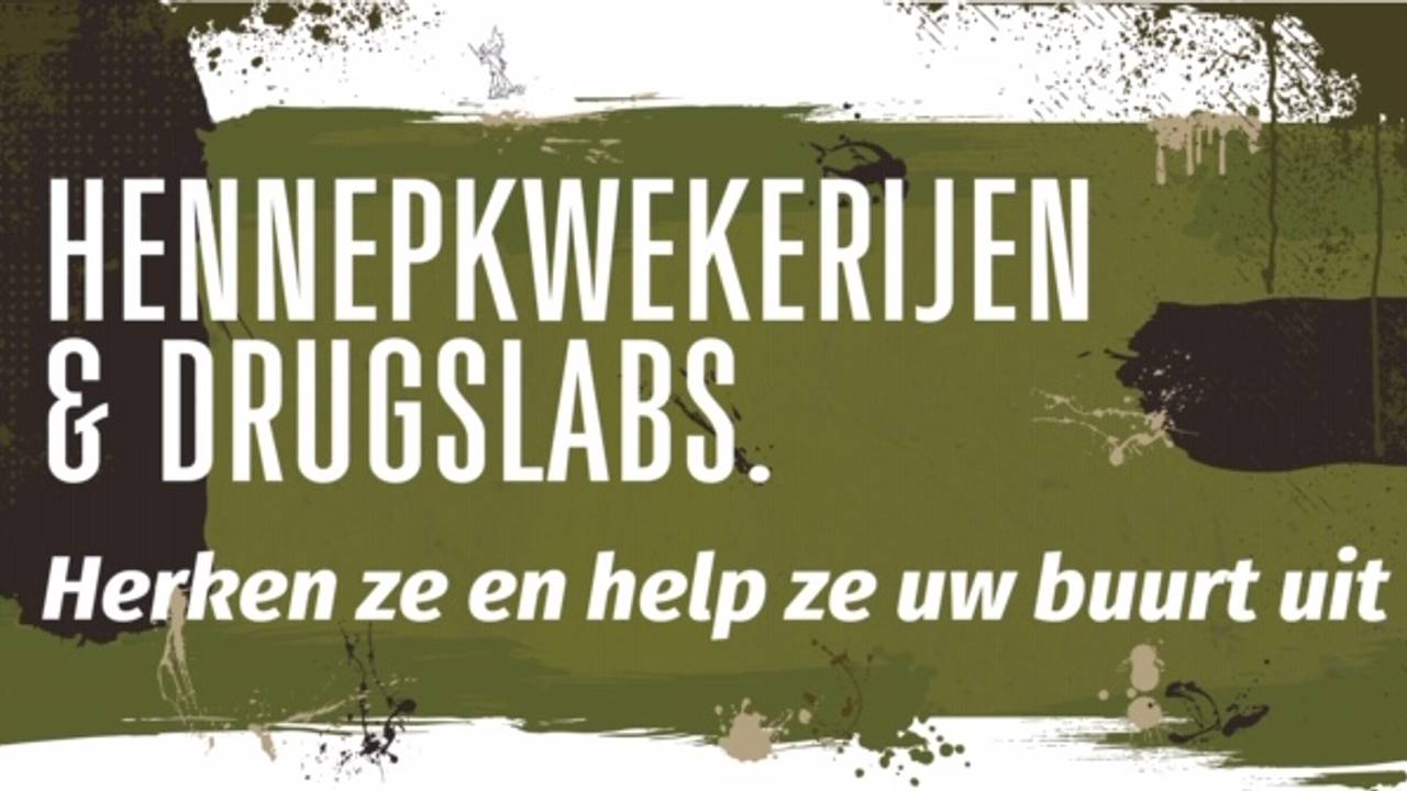 'Hennepkwekerijen en drugslabs: help ze uw buurt uit', staat met dikke letters op de folder die zaterdag iedereen in Oost-Brabant op deurmat krijgt.