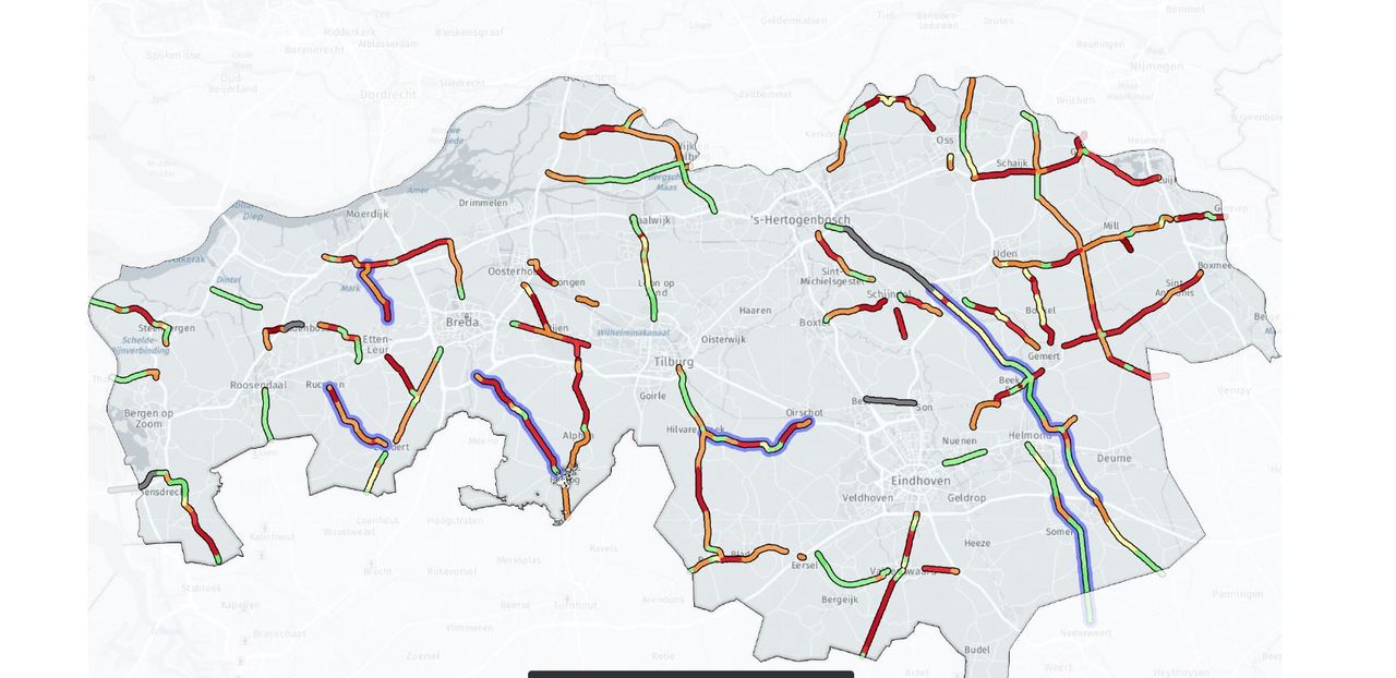 Het provinciale wegennet is door de organisatie in kaart gebracht, afgezet tegen de verkeersongevallen die de afgelopen vier jaar zijn gebeurd. Dit is gecombineerd met een technische analyse van de veiligheid van de weg, die is weergegeven door een score. 1121 kilometer aan Brabantse wegen is opgenomen in de analyse.