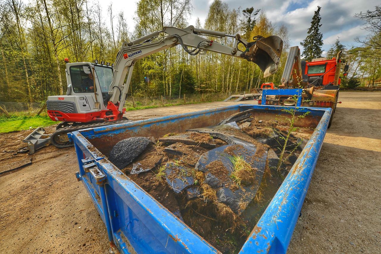 De politie heeft het gebied van de dumping afgezet met linten. De parkeerplaats was net opgeknapt, zodat de bezoekers van het Leenderbos weer konden parkeren.