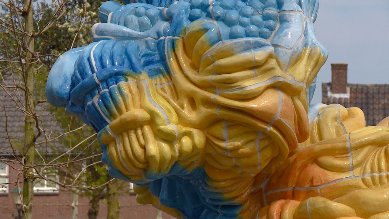 Maar zo'n zwaar, massief beeld zou hufterproof moeten zijn. "Dat zal best. Maar we wonen hier in een landbouwdorp, haha." Alles kan kapot? "Ja natuurlijk", lacht Van der Kallen. "Maar dat willen we natuurlijk niet."