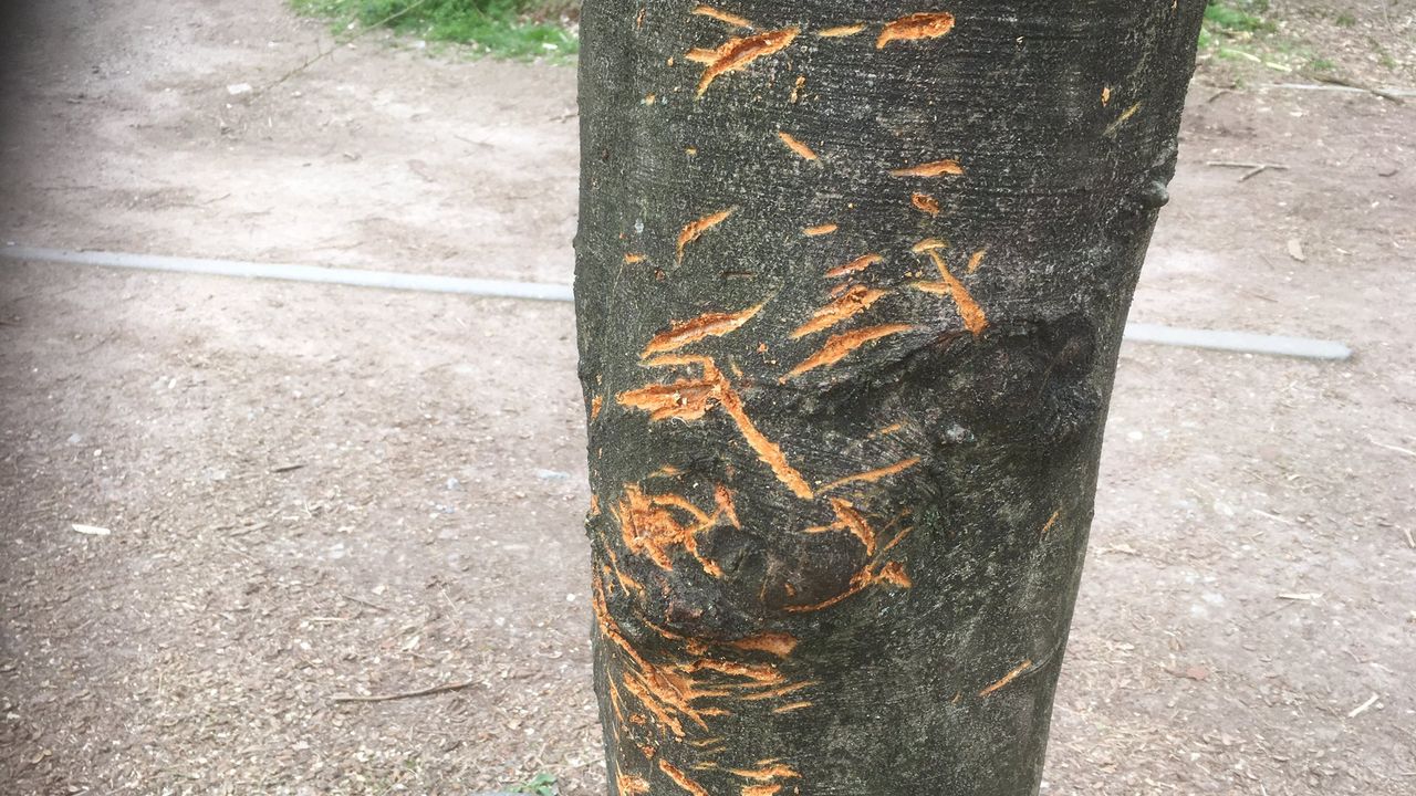 Bizarre bijtsporen op bomen in Oisterwijk: 'Dit zijn tandafdrukken van een hond'
