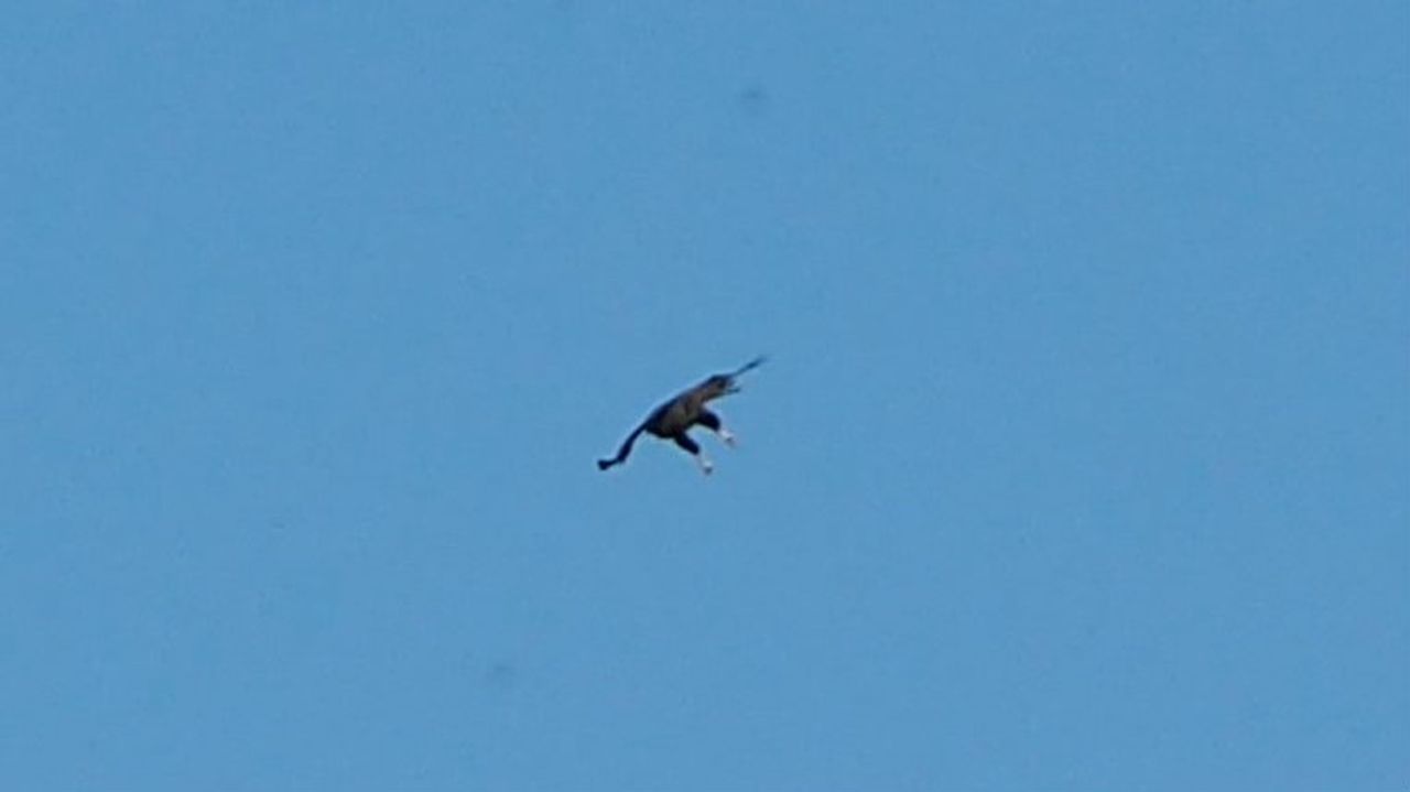 Op de foto van Willeke van Delft zie je een donkere en grote vogel met witte vlekken net boven de klauwen. De vogel vliegt op grote afstand en dus kan ik de kop niet goed zien, maar volgens mij is dit een zeearend. Naar mijn idee hebben we hier te maken met een Amerikaanse zeearend. De in Nederland broedende zeearenden hebben geen wit boven de klauwen en ook geen witte kop. Amerikaanse zeearenden hebben deze kenmerken wel. Dus óf dit is een trekker die wat verdwaald is of het is een ontsnapte Amerikaanse zeearend uit een roofvogelshow.