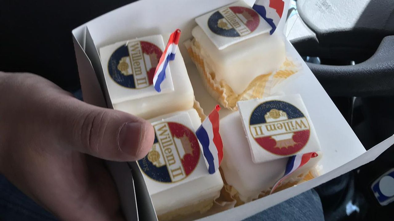 Zaterdag op weg naar Duitsland smullen ze in de auto van speciale Willem II-gebakjes. Een betere voorbereiding kun je niet hebben.
