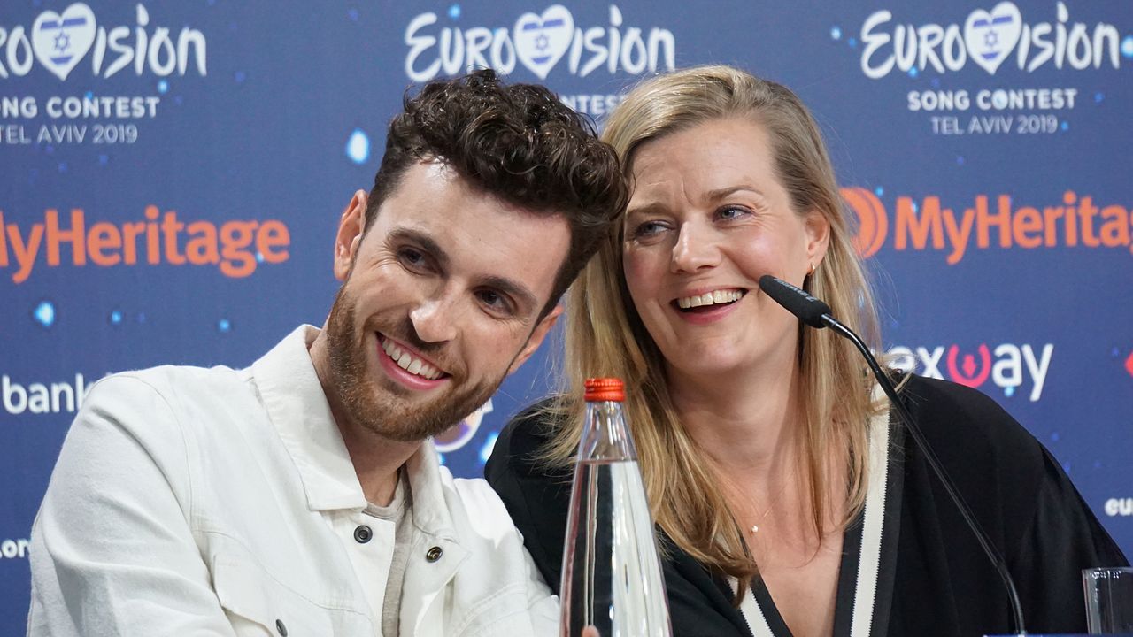 Na de halve finale gaven de tien landen die door zijn samen een persconferentie. Nederland kwam als tweede uit de envelop en dus mag Duncan ook als tweede vragen beantwoorden.