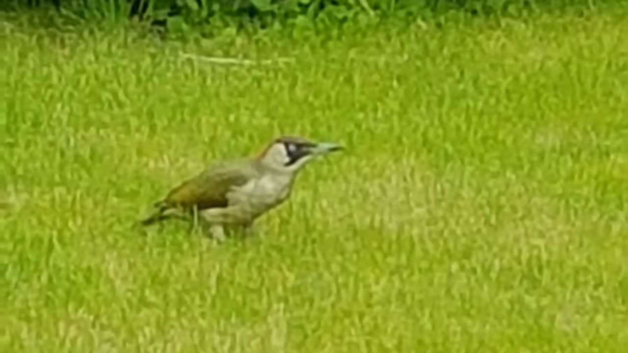 Op het gazon van 'buuf' Adeline Besselink zit een redelijk groene vogel. Ze vraagt zich af welke vogel dit is. Dit is de groene specht. Ze vraagt ook wat hij doet en dat is gemakkelijk; het eten van heel veel mieren en hun larven. Super handig! Groene spechten kunnen maximaal 34 centimeter groot worden. De vogel is te vergelijken met een Turkse tortelduif. Groene spechten zijn de meest op mieren gefixeerde spechten. Je zult groene spechten dan ook bijna nooit in bomen zijn hakken. Ze gaan liever in kort gras op zoek naar allerlei soorten mierennesten. Het liefst eten ze behaarde rode bosmieren, maar ook andere mieren staan op de lijst. Naast mieren eten ze soms ook andere geleedpotigen, zoals spinnen en een diversiteit aan insecten. Tot slot kan ik ook nog melden, dat ze zich soms tegoed doen aan bessen - zoals wilde lijsterbessen - en vruchten als kersen, appels en druiven.