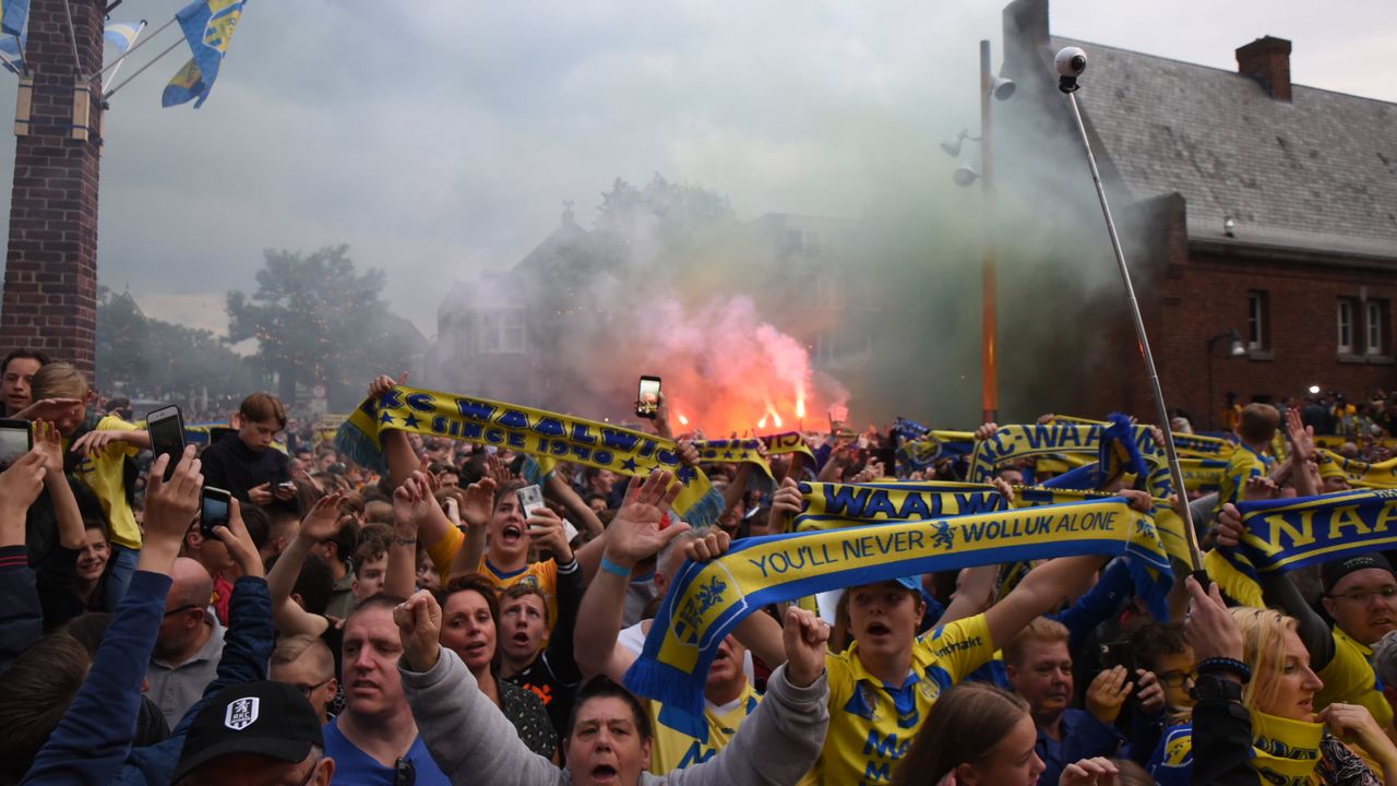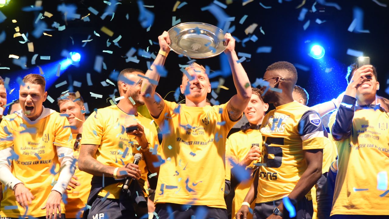 Duizenden mensen stroomden woensdagavond het Raadhuisplein in Waalwijk op. Ze kwamen om hun helden van RKC huldigen. De club won dinsdagavond tijdens een spectaculaire wedstrijd van Go Ahead Eagles en speelt volgend jaar eredivisievoetbal. Dit zijn de mooiste 10 foto's van de huldiging.