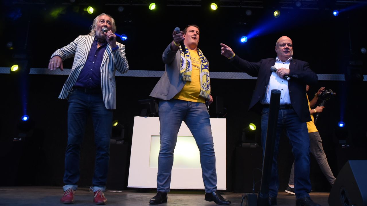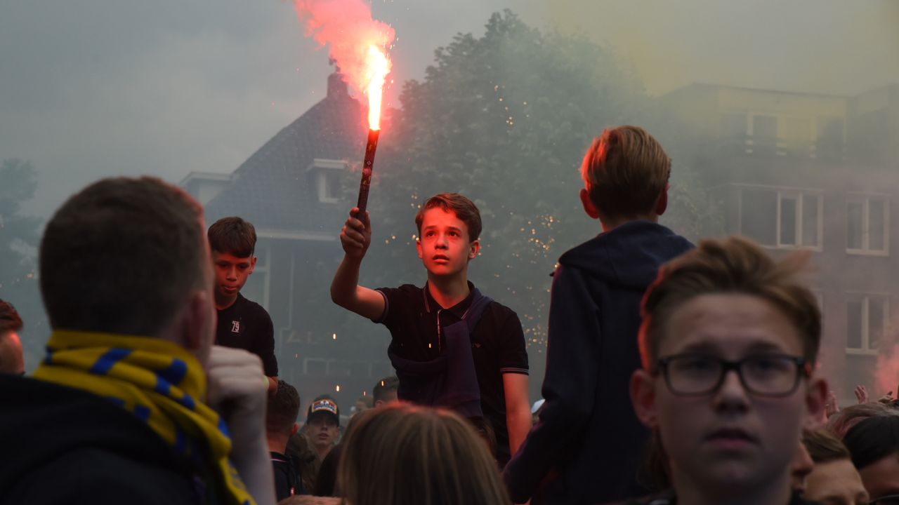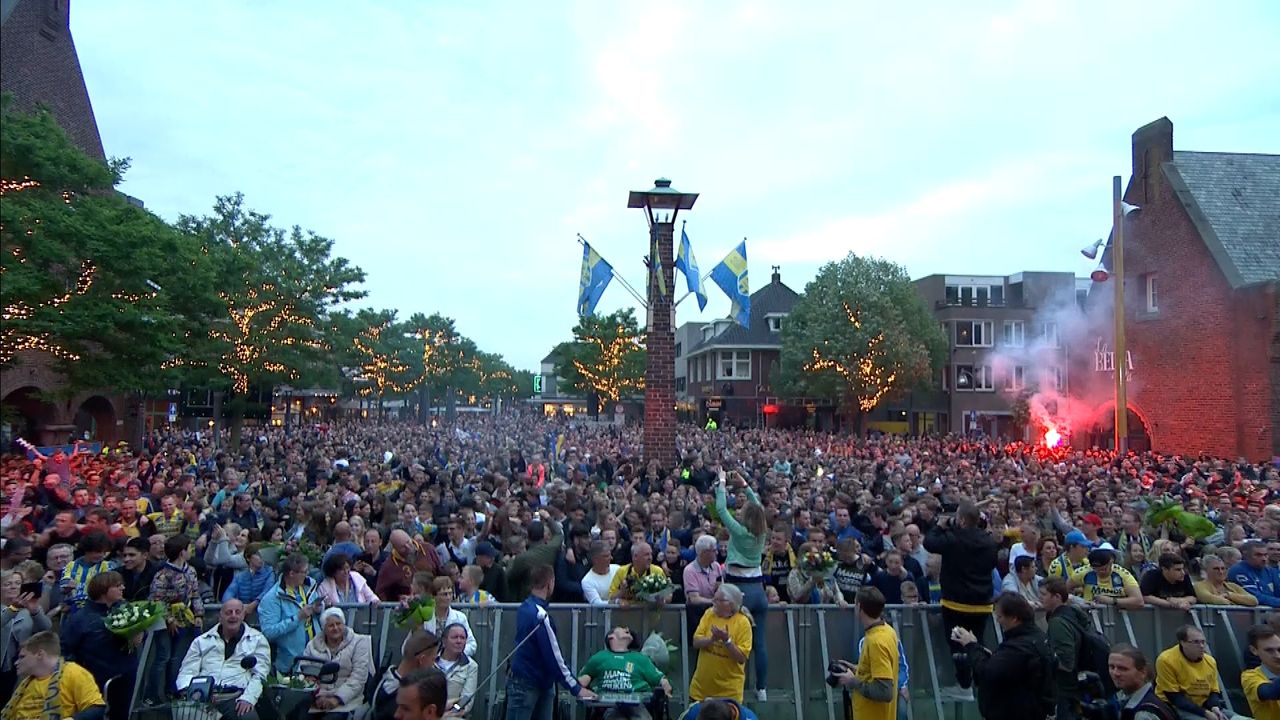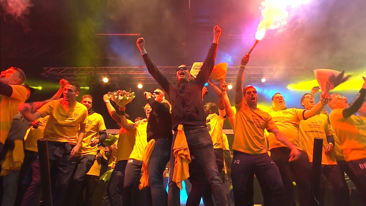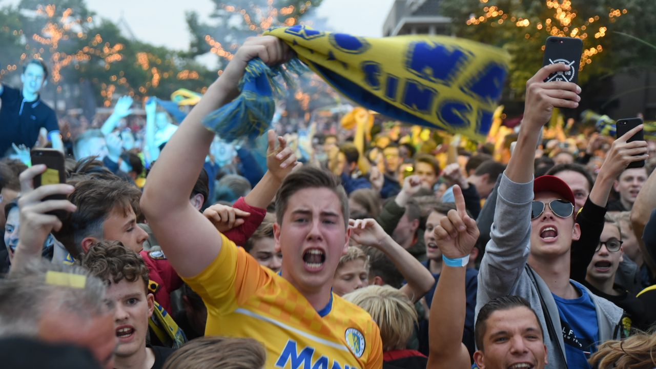 Duizenden in geel-blauw uitgedoste mensen zingen 'hun' RKC toe.