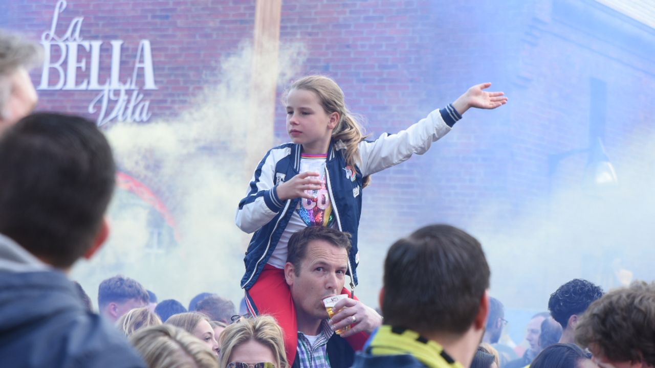 Niet alleen op het plein maar zeker ook op het podium gaat het helemaal los.