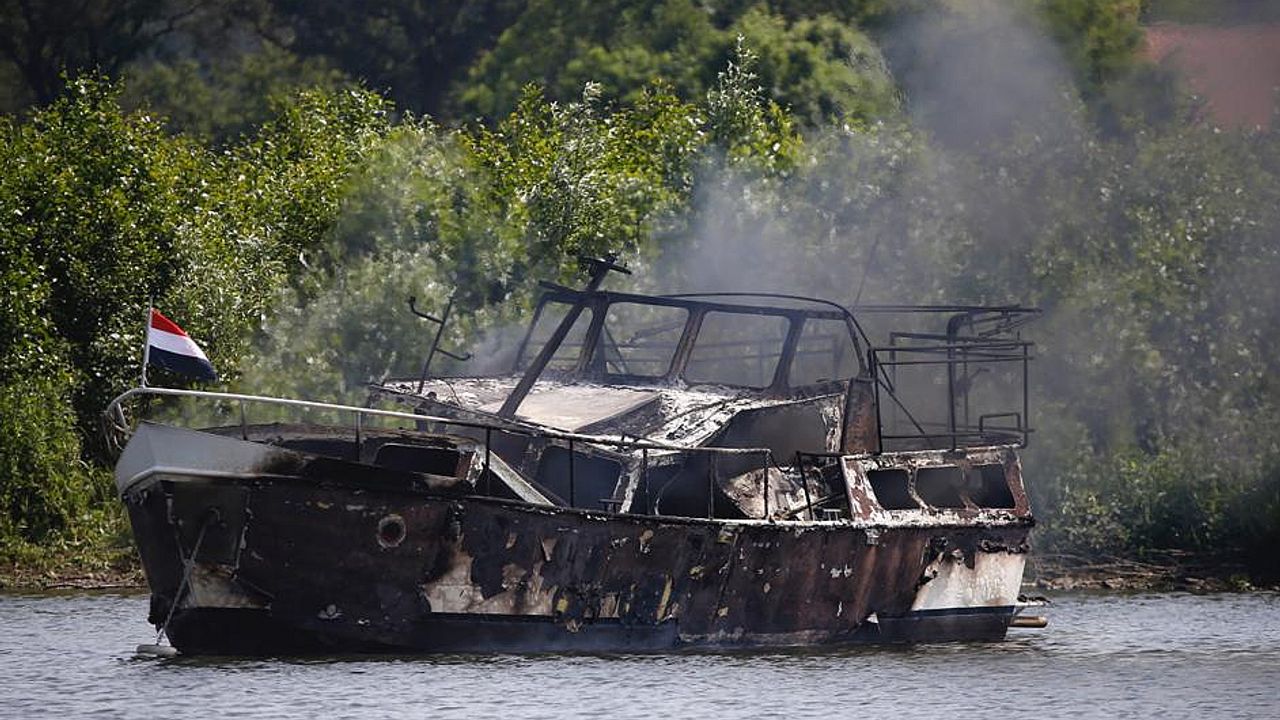 Hoe de brand kon ontstaan, wordt onderzocht. Van de boot is weinig meer over.