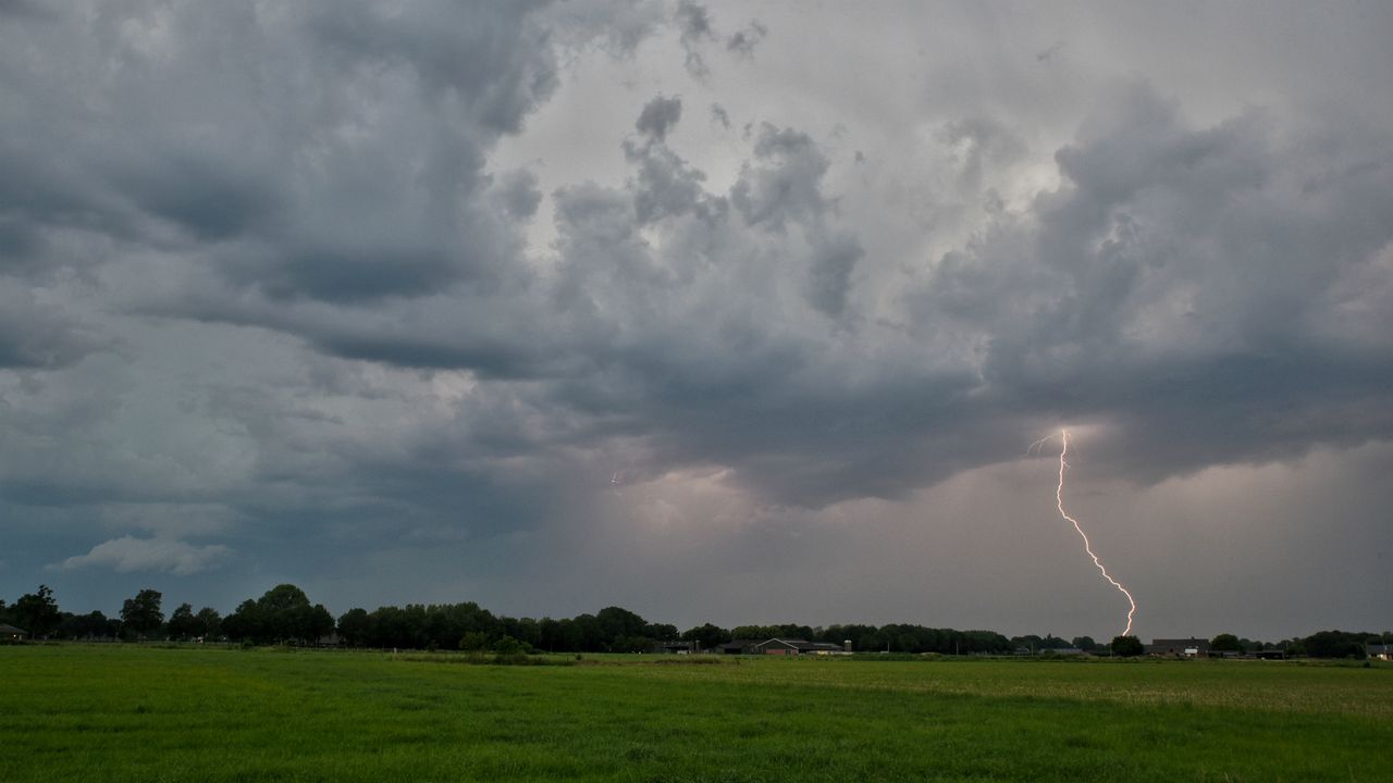 Bliksem slaat in huizen en bomen op auto's door noodweer