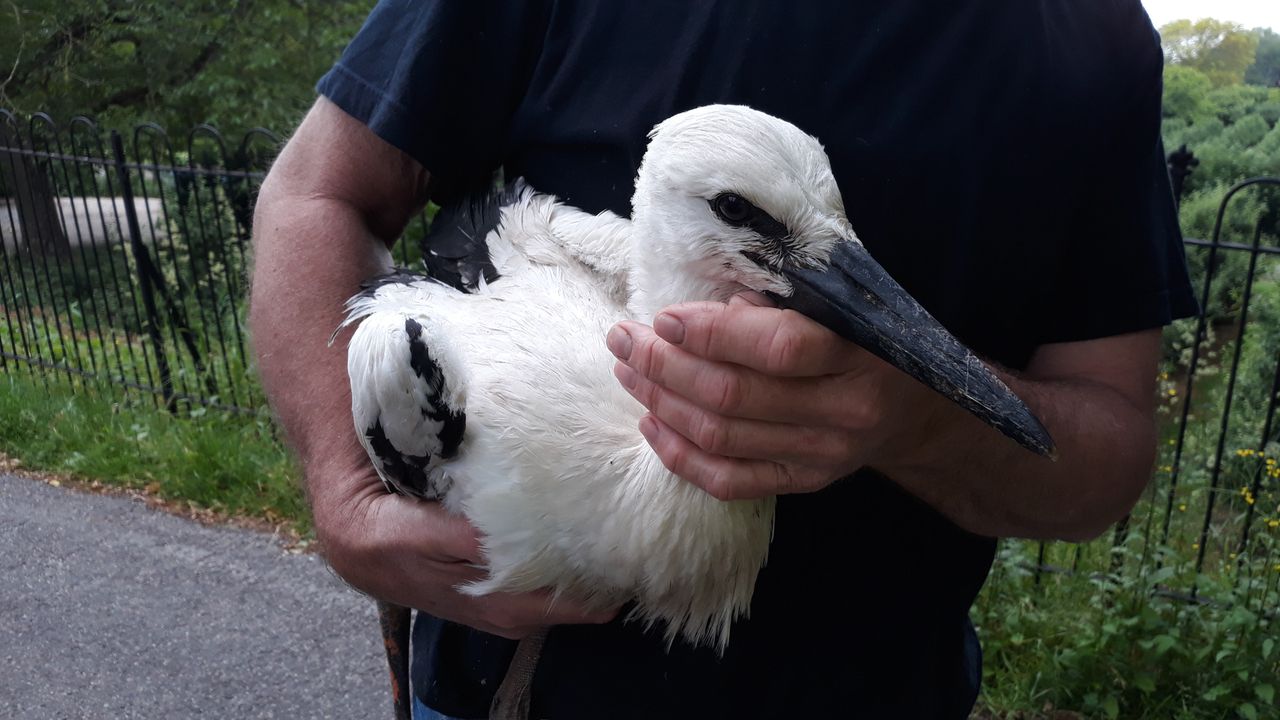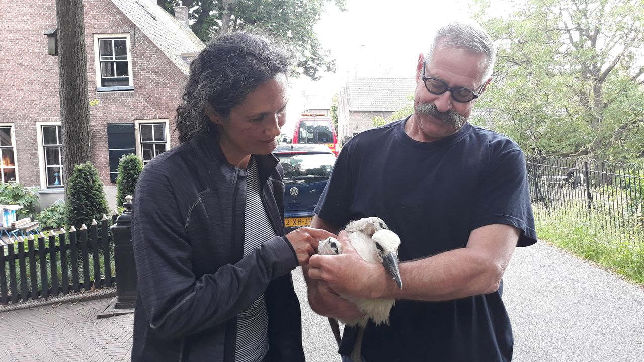 De andere volwassen ooievaar zwerft nog rond in het dorp. "Die keek van een afstandje toe toen wij het jonkie meenamen. Maar met maar één ouder weten wij niet of het goed zal blijven gaan met het jonkie. In de opvang wordt het goed verzorgd en is deze ooievaar zeker veilig."