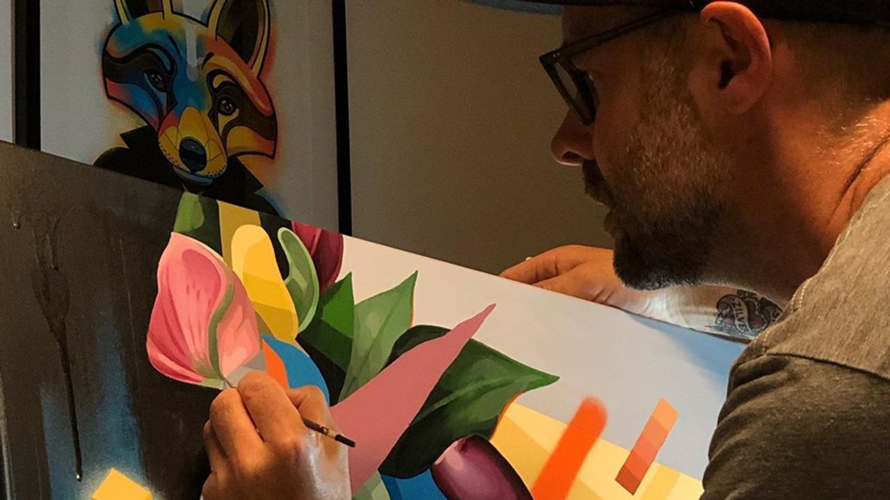 Een jaar later, nu vijf jaar geleden, ging hij met een vriend voor de lol los op een muur in New York. "Ik liet bij die muurschildering mijn Instagramnaam achter. "Binnen no time kwamen daar allemaal opdrachten uit. Ik heb daar tien muren voorzien met mijn streetart." Sindsdien gaat het hard met zijn werk op muren, maar ook zijn schilderijen zijn gewild.