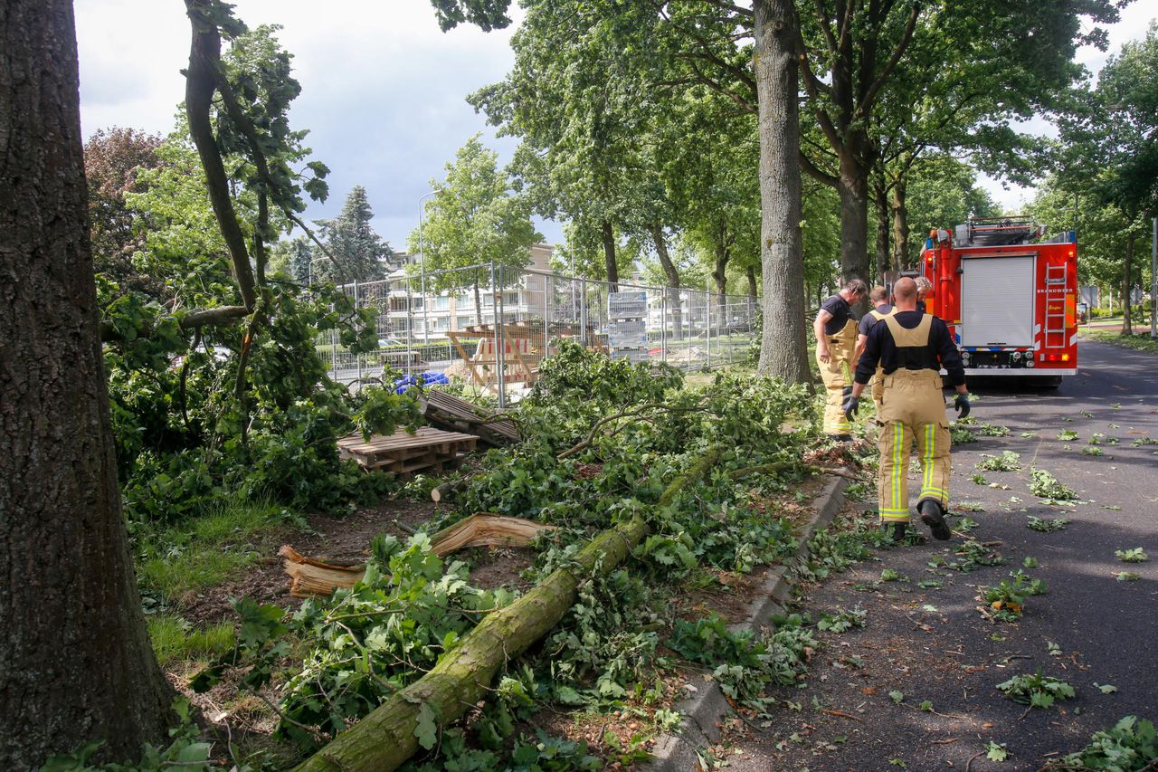 Brandweer druk met omvallende bomen, scheurende gevels en omgewaaide bestelwagen