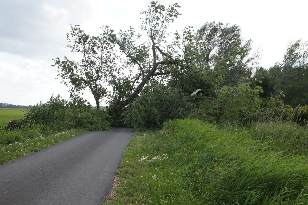 In Elshout is de Hooibroeksesteeg volledig versperd vanwege een omgevallen boom. De boom wordt zaterdag nog opgeruimd.