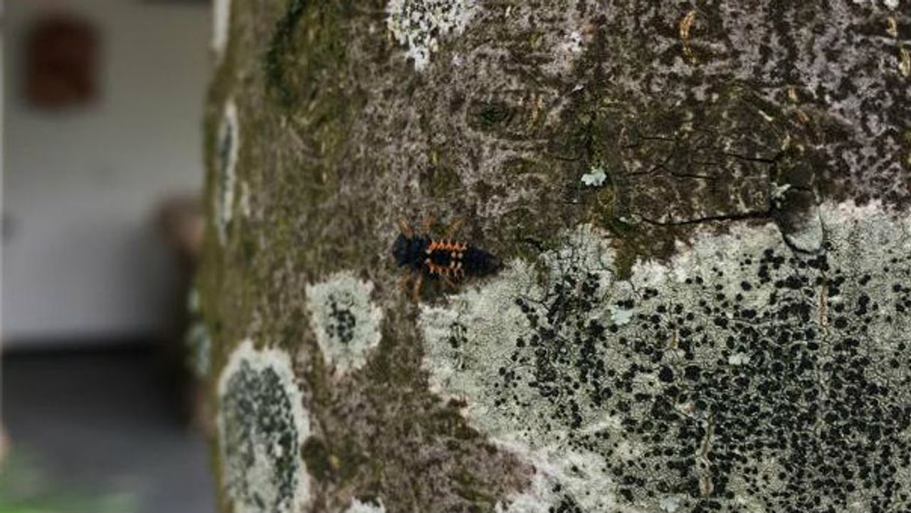 Op de stam van deze boom zit een zwart diertje met in het midden wat oranje stekels. Hennie van den Berg vraagt zich af welk diertje dit is. Als je inzoomt, zie je dat het diertje zes poten heeft. Dan kom je dus uit bij de insectengroep. Hennie heeft het ook over luis. Dan ga je richting een luizeneter en dat klopt, want dit diertje is de larve van onze bekende lieveheersbeestje. Het lieveheersbeestje is een echt insect en legt dus eitjes. Deze geeloranje rechtopstaande eitjes legt ze meestal in een groepje aan de onderkant van een blad, maar wel in de buurt van bladluizen. Uit die eitjes komen larven tevoorschijn. Die lijken overigens helemaal niet op volwassen lieveheersbeestjes. Het lijken miniatuurdraken met hun krokodilvormige, langwerpige lichamen. Mensen vinden ze vaak eng en daarom doden ze vaak deze mooie diertjes. Heel stom, want in de tuin zijn dit juist de goede helpers, die veel luizen opeten. Deze larven van het lieveheersbeestje vervellen drie keer. De ontwikkeling van de larve tot pop duurt ongeveer twintig dagen. In die tijd eten ze per larve tweehonderd tot zeshonderd bladluizen, dus laat ze lekker leven!