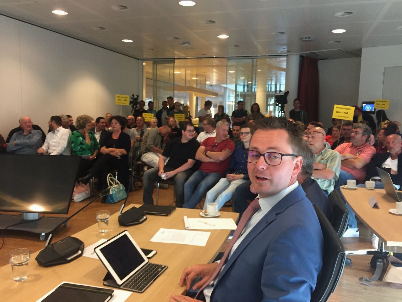 Naast de soms ook ongenuanceerde standpunten van de beide omroepen was het ook een beetje MTV in de raadzaal, want fans van Oké FM hadden zelfs Johan Vlemmix ingeschakeld om de politici te overtuigen. Op een groot scherm en de boxen op standje tien was Vlemmix te zien en te horen in een flitsende videoclip van Feestduo Kaaigezelig met het nummer ‘Ja, ik luister naar Oké’.
