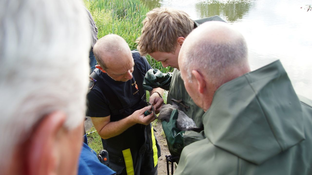 Twee brandweermannen hebben de draad losgeknipt en verwijderd. Dit gebeurde rond zeven uur. Het dier zwom volgens een ooggetuige daarna weer vrolijk rond in de vijver.
