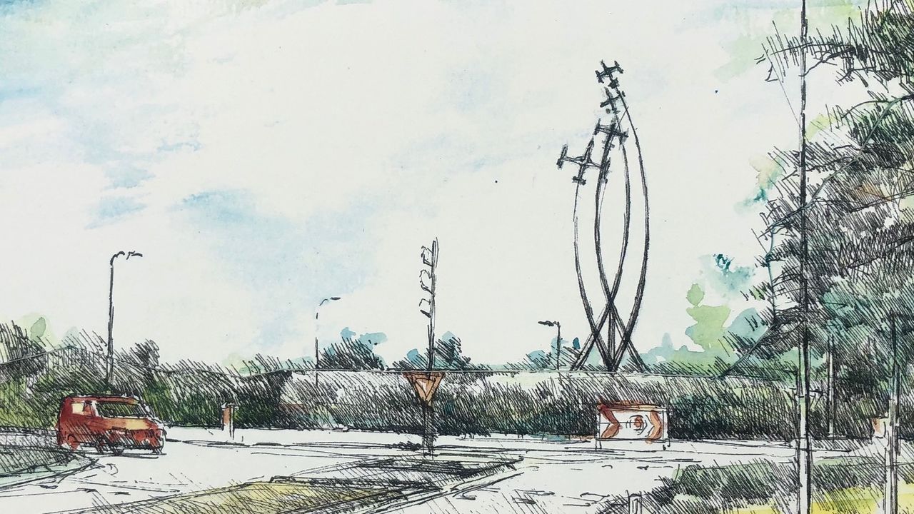 "Het is mooi groen, maar mijn voorgevoel zegt dat het weleens zo zou kunnen blijven", zegt Van Nes verbitterd. Vijf jaar geleden maakte hij meerdere schetsen en maquettes voor zijn kunstwerk op de rotonde. Het zou een monument moeten zijn voor voor de twee omgekomen piloten van de Whiskey Four.