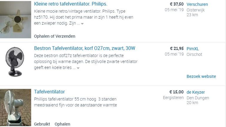 De verkopen op de handelssite gaan ook hard, want niet zelden is de tweedehands ventilator 'net verkocht' of gereserveerd.