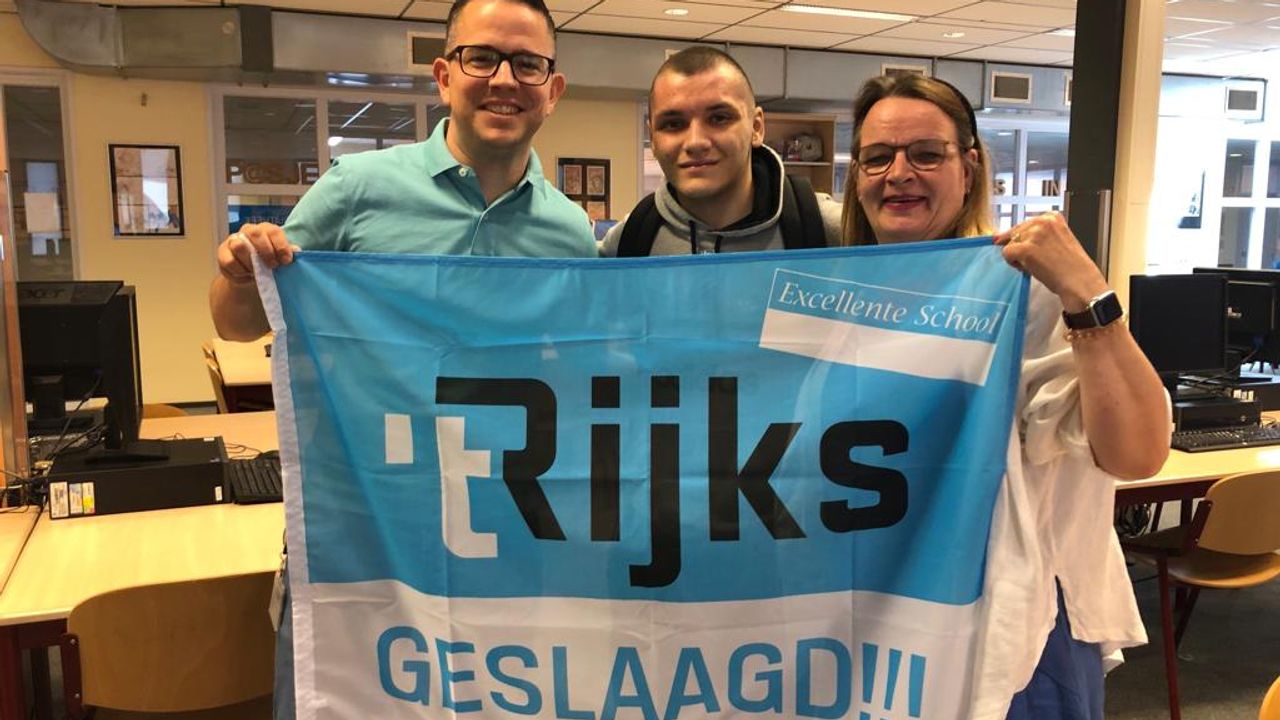 "Leerkrachten en een gepensioneerde docent van 't Rijks hebben mij er doorheen getrokken. Ik heb het afgelopen halfjaar in twee maanden gedaan. Ik heb gestreden, maar het was het waard", zegt hij trots. "Hij heeft het gehaald. Hij heeft ook erg goed zijn beste gedaan", vult zijn moeder hem aan.