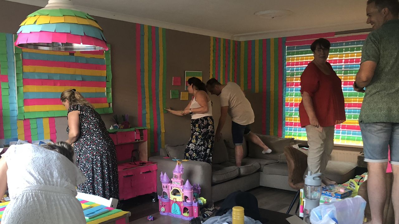 Huis van bruidspaar volgeplakt met 17.500 post-its: 'Het is echt monnikenwerk'
