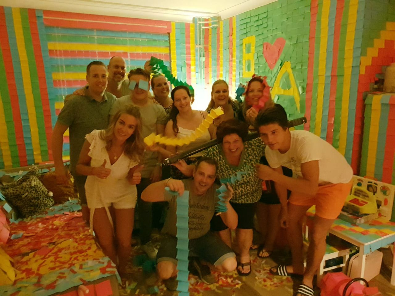 Wie denkt dat Post-its plakken zo gedaan is, heeft het mis. "Je hebt geduld nodig. Het is echt monnikenwerk. Alle blaadjes van beneden naar boven, netjes op elkaar. Op een gegeven moment wilde je gewoon niet meer." De groep hield vol en maakte een prachtig kunstwerk van het huis. "Het was eigenlijk gewoon heel gezellig. Er hing een hele leuke sfeer."