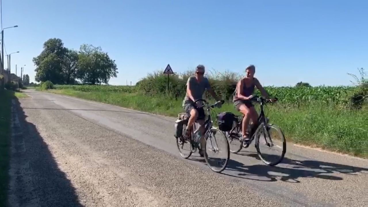 Het stel volgt de OranjeLeeuwinnen op de voet. Van Le Havre en Reims tot Rennes en Valenciennes. En elke dag stappen ze op hun geliefde fietsen.