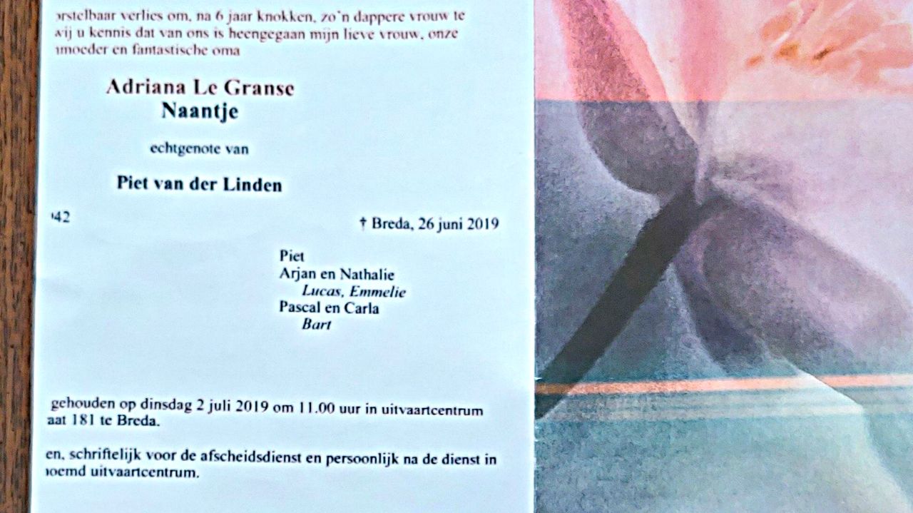 Maar opnieuw ging het mis. Op de kopie die PostNL verstuurde – “een A4'tje”, zo legt Pascal uit - stond niet het volledige adres waar de dienst voor zijn moeder werd gehouden. De straatnaam was weggevallen. “Mensen moesten het doen met Breda 181. Ongelooflijk, dan denk je alles perfect geregeld te hebben. Mijn vader, Piet, is zo verdrietig.”
