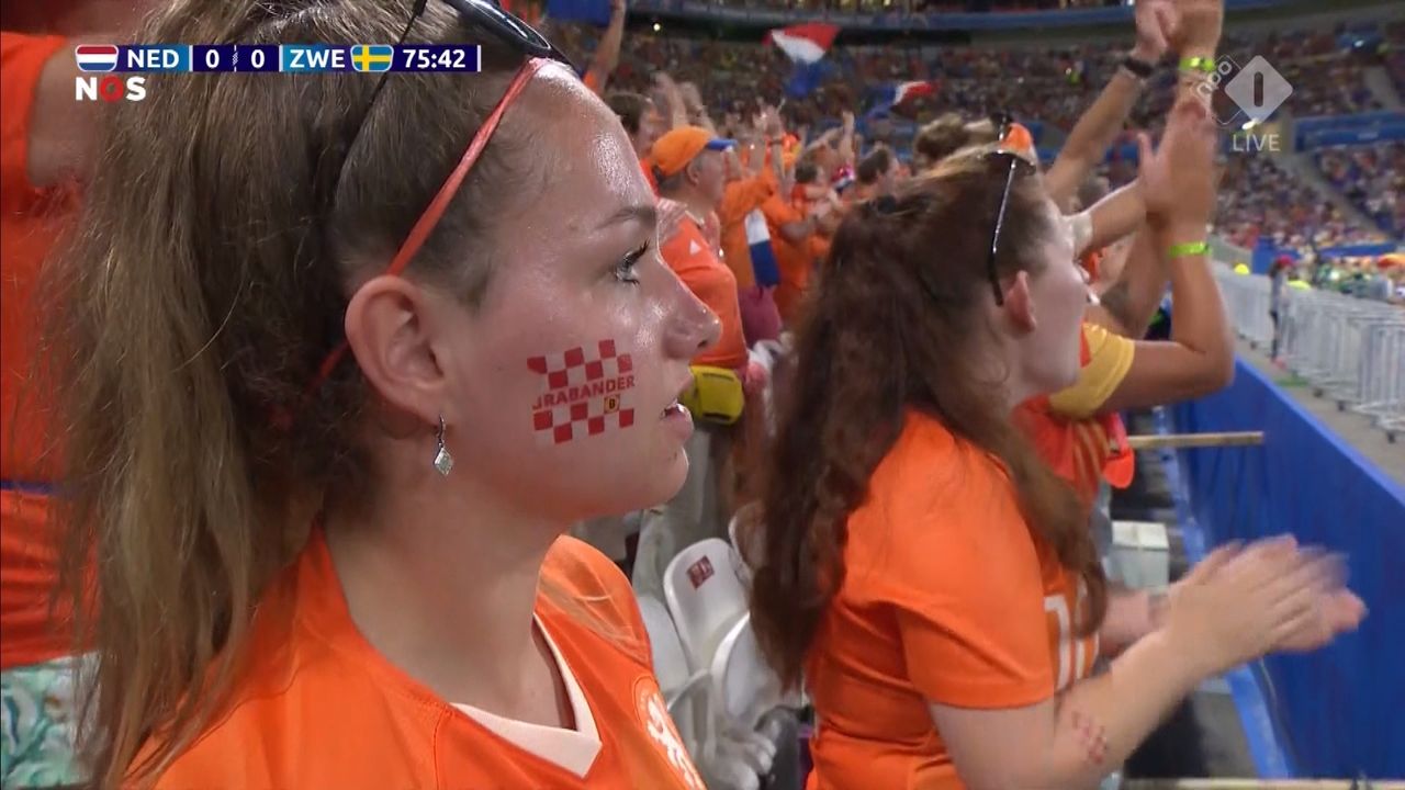 Indy gespot op WK in Frankrijk met Brabants vlaggetje op haar wang, Omroep Brabant verrast haar