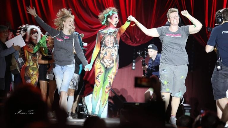 “Zo ben ik erin gerold. Model bodypainting worden,is niet een gedachte waarmee je doorgaans ’s ochtends wakker wordt en denkt: dát ga ik doen", vertelt Noortje. In het dagelijks leven werkt ze als coach bij projecten in de zorgsector. Afgelopen weekend nam ze voor de zevende keer deel aan het wereldkampioenschap. Samen met de bodypainters Tera en Alexandra vormt ze een team dat in 2016 al een keer tweede was geworden.