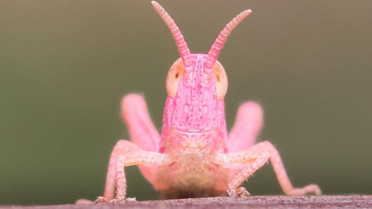 Maar hoe wordt deze sprinkhaan roze? “Dit komt door een zo genoemde pigmentverstoring. Door een genetische afwijking ontbreekt het groene pigment of wordt er zoveel roze pigment aangemaakt dat de sprinkhaan niet meer groen is.”