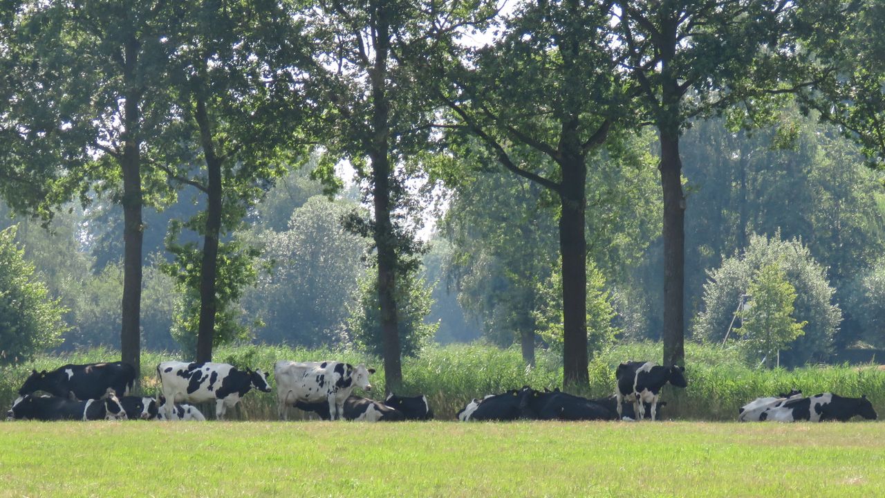 De koeien moeten ook aan hun verkoeling komen. Ze zoeken de schaduw op en wachten in de rij voor water.