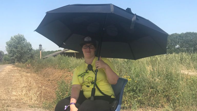 Vlak voor het festivalterrein zit een meisje onder een zwarte paraplu. Ze schuilt voor de felle zon. "Ja hoor, het gaat zo wel", zegt Sabrina Rijksen. Ze is toezichthouder en is daarnaast ook fervent bezoeker van het festival. "Het is geweldig, ik kom hier al jaren". Zo zijn er meer mensen die zich niet laten afschrikken door het extreem warme weer. "Aan het bezoekersaantal merken we niks."