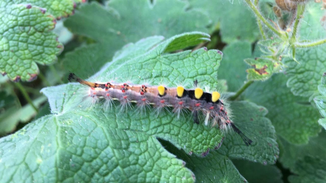 Op de foto die ik kreeg van Henk van Beers zie je een harige en enigszins blauwe rups met vier opvallende gele borstels. We hebben hier te maken met de rups van de witvlakvlinder. Het is dus niet de gevreesde eikenprocessierups, die je amper alleen ziet. De rups van de witvlakvlinder behoort ook tot een andere familie. De eikenprocessierups behoort tot de familie van tandvlinders en deze witvlakvlinder tot de familie van de donsvlinders. Witvlakrupsen voeden zich met diverse soorten waardplanten. Voorbeelden hiervan zijn wilgen en struiken van de rozenfamilie zoals meidoorns en bramenstruiken. Dat deze witvlakrups op een geranium is gefotografeerd is toeval. Na het popstadium ontstaat een volwassen bruine witvlakvlinder, die zich als nachtvlinder niet meer voedt en vrij kort leeft.