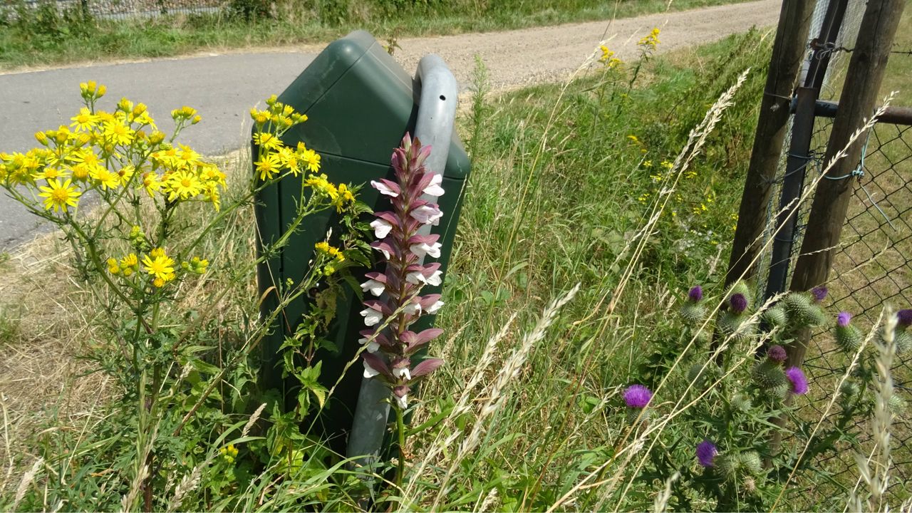 Op de foto die Loes Westgeest me stuurde, staat een prachtige plant tegen de vuilnisbak aan. Loes denkt dat dit een orchidee is. Ik wist dat dit niet het geval is, maar niet wat het wel is. Ik dacht aan een tuinplant, dus stuurde ik de vraag door naar mijn kennis Adry Hoeven. Hij kwam meteen met de naam arcanthus. Daarop heb ik op internet gekeken en daar vond ik hem. Dit is de zachte arcanthus ook wel stekelige berenklauw genoemd. De naam stekelige berenklauw heeft niets te maken met de inheemse berenklauw - wat een mooi schermbloemige is - en al helemaal niets met allerlei reuzen berenklauwen. Daarom noem ik deze plant liever zachte arcanthus, die als statige plant mooi in de tuinborders kan staan. Oorspronkelijk komt deze plant uit het gebied rond de Middellandse Zee. De plant zaait zich vrij makkelijk uit en kan dus zo maar in een berm komen te staan.